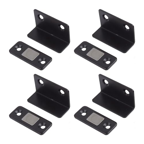 KOYOKOMAのL字型マグネットキャッチ4個セット。強力な磁気キャッチで、ステンレス製の薄型デザイン。ドア止め金具として、家具扉や戸棚に最適。引き戸に使用可能で、両面テープとネジ付き(ブラック)。