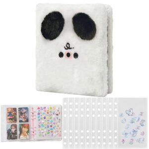 もこもこ ファー素材 バインダー|カード収納用 活页ファイル|透明リフィル10枚付き|コンパクトサイズ|コレクション整理・持ち運び便利(白耳いぬデザイン)