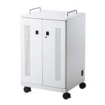 SANWA SUPPLYのノートパソコン収納キャビネットCAI-CAB104Wは、12台のノートパソコンを安全に収納可能。鍵付きで防犯性が高く、通気性のあるデザインで快適な使用をサポートします。