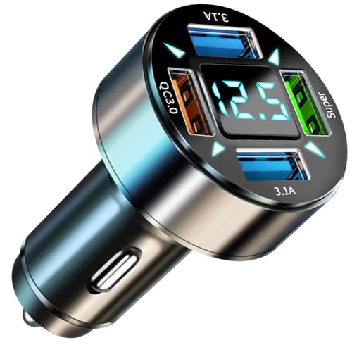 TOORQRカーチャージャーは66Wの4ポートUSB充電器で、QC3.0対応。12V/24V車両に適合し、LED表示と電圧計を搭載。iPhoneやGalaxyの急速充電に最適です。