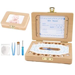 サムコス 乳歯ケース 木製 乳歯入れ 写真入れ 日本語版 子供 歯 保管 収納 記念な乳歯 ベビーメモリアルグッズ 男の子/女の子