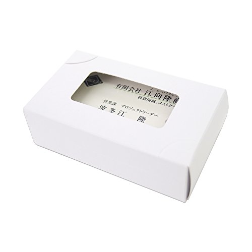 名刺ケースは紙製で窓あり、組み立てが簡単なワンタッチ式のMサイズ(高さ30mm)です。50個入りで、ビジネスシーンに最適なスタイリッシュな名刺箱です。