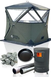 Share FunN サウナテント テントサウナ スタートセット 4人用 ロウリュができる すぐ使える 幅240cm×奥行240cm×高さ210cm 薪ストーブ ストーン アウトドア キャンプ ポップアップ 簡単設営 MGC (P グリーン)