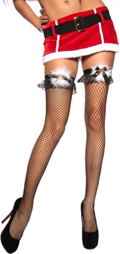 レディースセクシー網タイツ、ニーハイソックス。黒と赤のロング靴下、鈴とリボン付きでかわいいデザイン。膝上のメッシュ素材、滑り止めあり。コスプレやハロウィン、クリスマス、演劇、パーティーに最適!