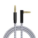 3.5mmオーディオケーブル(3フィート/0.9m)。90度直角コネクタ、4コンダクターTRRS対応。マイク付きで車やヘッドフォン、スピーカー、タブレット、ノートパソコン、スマホに最適。