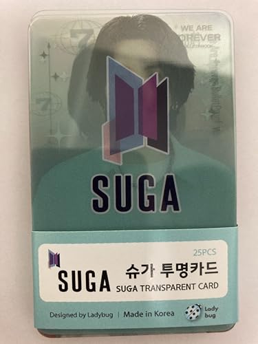 シュガ(SUGA)のクリアフォトカード25枚セット。バンタン(防弾少年団)の透明なトレーディングカードで、ポカ付き。並行輸入品で、ファン必見のアイテムです。