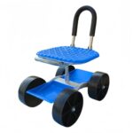 Sariny草むしり椅は360度回転可能なキャスター付き作業椅子で、農作業や園芸に最適。ブルーの折りたたみ式四輪、移動も簡単で便利。