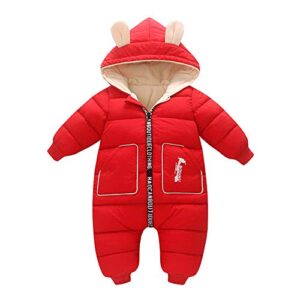 [YFS] ジャンプスーツ ベビー スキーウェア 雪遊び 子供服 ロンパース 男の子女の子 秋冬 防寒 保温 フード付き 前開き 出産祝い 百日祝い 七五三 90 100 (レッド-2, 110)