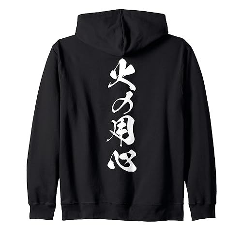 火の用心や防災、防犯を意識した夜回り用のジップパーカー。男女兼用で大きいサイズも展開。筆文字デザインが魅力的で、黒を基調とした他カラーもあり、スタイリッシュに防災意識を高めるアイテムです。