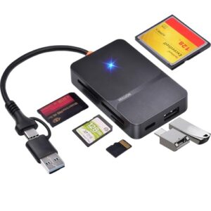 Thecom USB Type C カードリーダー 3in1 USB3.0 メモリカードリーダー 高速データ転送 OTG機能付き Micro SD SDカードリーダー SDHC/SDXC/SD/Micro SDHC/Micro SDXC/MMC/RS-MMC (Type-c端子&USB2.0端子&Micro USB端子, 1個)