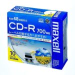 maxellのデータ用CD-Rは、700MBの容量と48倍速対応。インクジェットプリンタで印刷可能なホワイト(ワイド印刷)仕様。10枚入りで、5mmケースに収納。