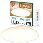 アイリスオーヤマの8畳用LEDシーリングライトCEA-AZ08DLは、明るさと色味を調整可能。リモコンとリモコンホルダーが付属し、調光・調色が簡単に行えます。部屋の雰囲気に合わせて使い分けが可能です。