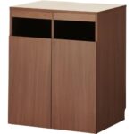 オフィスコムのゴミ箱収納用カウンターは、幅796mm、奥行608mm、高さ950mmのダークブラウン仕上げです。法人様向けにデザインされ、オフィス環境を整えます。