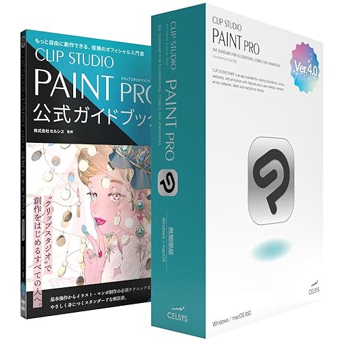 CLIP STUDIO PAINT PRO Ver.4.0は、Windows/macOS対応の買い切り版パッケージです。公式ガイドブック改訂3版が付属し、初心者からプロまで幅広い機能を提供します。
