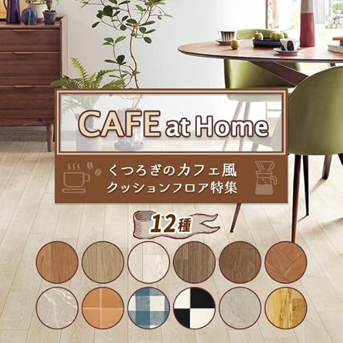 シンコールのクッションフロア「くつろぎのカフェ風」は、1.8mm厚で182cm幅のモルタルデザイン(E5151 Mortar)。耐久性に優れ、清掃も簡単で、カフェのようなおしゃれな空間を演出します。
