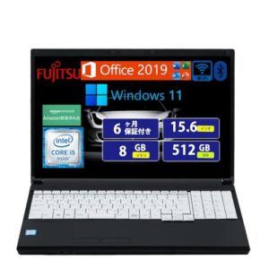 【整備済み品】富士通 ノートパソコン A577/15.6型 フルHD/内蔵WEBカメラ/第7世代 Core i5/8GBメモリ/高速SSD 256GB /テンキー/MS Office H&B 2021/Win11 Pro/Wi‑Fi/DVDROM