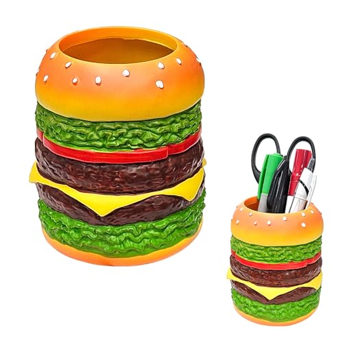 ハンバーガー型のペン立てで、文房具を可愛く収納できます。アメリカン雑貨のデザインが魅力的で、デスクやオフィスにぴったり。小物入れとしても使え、インテリアを楽しむアイテムです。