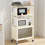 FaitLuxキッチンラックは、4段オープンラックで、キャビネット付き。各層耐荷重50kg、高さ調整可能な省スペースデザイン。頑丈で、高直径ストッパーキャスターと三面ガードを備え、サイズは幅60×奥行38×高さ115cm、ホワイトです。