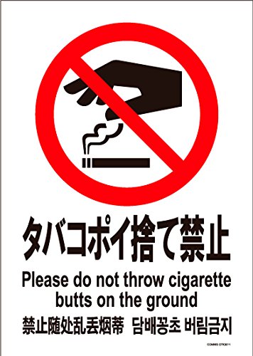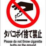 標識スクエア 「 タバコ ポイ捨て禁止 」 タテ・中【ステッカー シール】 138×194㎜ CFK3011 2枚組
