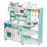 木製のKOGB模造キッチンセット。ごっこ遊びに最適なカラフルなキッチン用品付き。コーヒーメーカーとストーブ、調理器具が揃った幼児教育用。誕生日プレゼントにおすすめ!