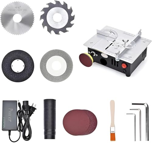 Bebemaxのミニテーブルソーは、2025年新開発の高精度DIYモデル。0-15mmの鋸刃昇降、0-90°の角度調節、7段変速機能を搭載し、木材やアクリル、金属など小さなオブジェクトを切断。4種のブレードと集塵パイプ付きで、収納も便利です。