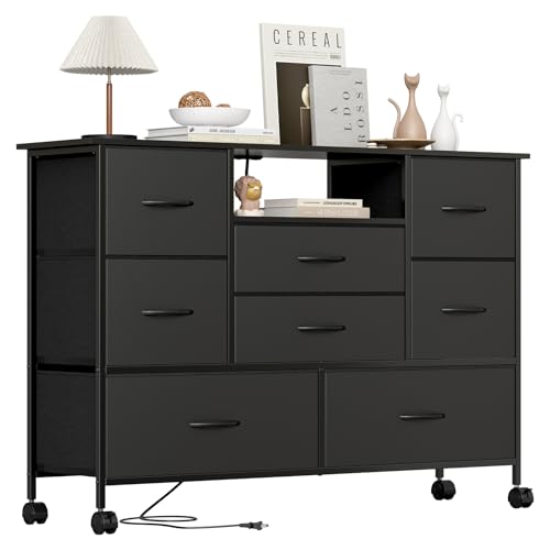 LunarLight チェストは幅114.5cm、奥行30cm、高さ79cmの収納ケースです。テレビ台としても利用可能で、2口コンセント、1枚棚板付き。ストッパーキャスターとアジャスト機能を兼ね備えた頑丈構造で、大容量の3段8つの収納スペースを提供します(カラー: 真っ白)。
