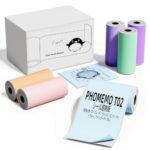 Phomemo T02純正感熱紙ロール6巻セット。幅50mm、長さ3.5mの粘着性感熱紙。カラーはミントグリーン、ラベンダー、ライトオレンジ、ピンク、ブルー、パープルのブラック。T02/M02/Q02/M02Lシリーズに適合。