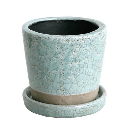 ダルトンの4号植木鉢はクラシックグリーンの陶器製で、受け皿付きです。高さ11cm、上部φ12cm、底部φ9.5cmのサイズで、穴あり設計のため排水も良好。園芸に最適です。