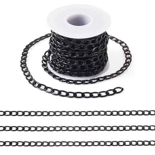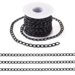 Beadthovenの黒色喜平チェーンは幅6mm、約5mの巻きで、溶接なしのリンクチェーン。ツイストデザインが特徴で、アクセサリーやDIYに最適なハンドメイド材料です。