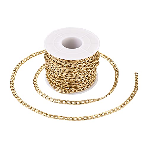Beadthoven 1巻入りのゴールドアルミチェーンは、幅4mmの喜平チェーンです。溶接なしのカーブチェーンで、DIYやハンドメイドのネックレス、ブレスレット、ジュエリー製作に最適。スプール付きで10m/ロール。