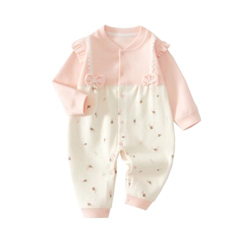 Babykoiの長袖ロンパースは、新生児用のカバーオールで、春秋に最適です。前開きデザインで、蝶結びと花柄の可愛いピンク色。12Mサイズで出産準備や贈り物に最適です。
