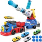 DOWELLINの子供用トラックおもちゃは、レーシングカー4台とEVAボール6個付き。光と音が楽しめ、イジェクション&シューティング機能搭載。3歳以上の男女に最適なギフトです。