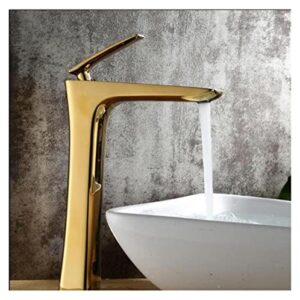 浴室水栓 蛇口エレガントブラシをかけられたゴールドバスルームの蛇口ホットと冷たい水洗面器ミキサータップ真鍮の便器のシンク水クレーン キッチン・バス備品 (Color : Gold tall)