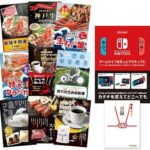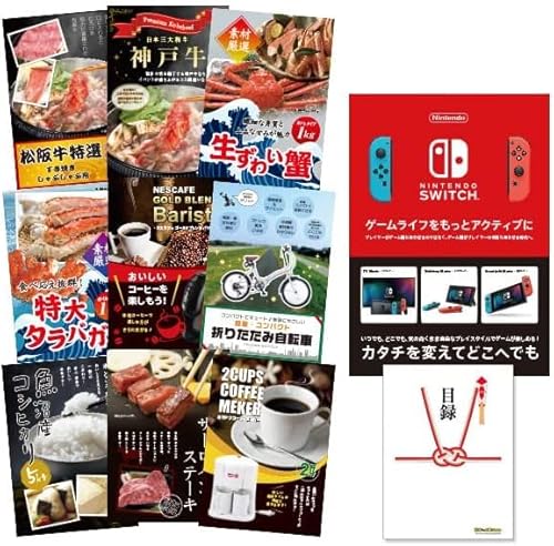 有効期限無しの景品10点セット。A3パネル付き。内容はSW|TCH、和牛、蟹、折りたたみ自転車など、グルメと家電が楽しめる豪華なセットです。
