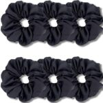 CHIROGRAPHYのラグジュアリーシュシュ6個セット。太い髪にも対応したXLサイズ(6インチ)。シルクより柔らかいプレミアムサテン製。6パック、ブラックカラーで、伸縮性のあるヘアバンドアクセサリー。