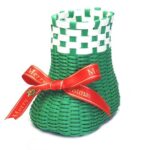 クリスマスブーツの手芸キット。お菓子や小物を入れられるサンタクロースの靴型収納。クラフトバンドの緑色素材付き。作り方説明書も付属。ハンドメイドでクリスマス飾りを楽しもう!