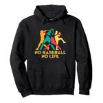 「No Baseball No Life」をテーマにした面白いTシャツ。ユニークな文字入りで、野球愛好者必見!メンズサイズのパーカーもあり、スタイリッシュに楽しめるアイテムです。