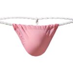 CIOKICXのダークグレーの男性ふんどし。アイスシルク製で冷感素材、無地デザインで極薄・スベスベ。お祭りや日常使いに適し、Tバックスタイル。