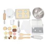 キッチンロールプレイセット、シミュレーション木製プレイフードケーキベーキングセット、インタラクティブ教育ミニシェフホームベーキングセット、一緒に遊ぶ木製クッキングトイセット、男の子、女の子用の製品情報
