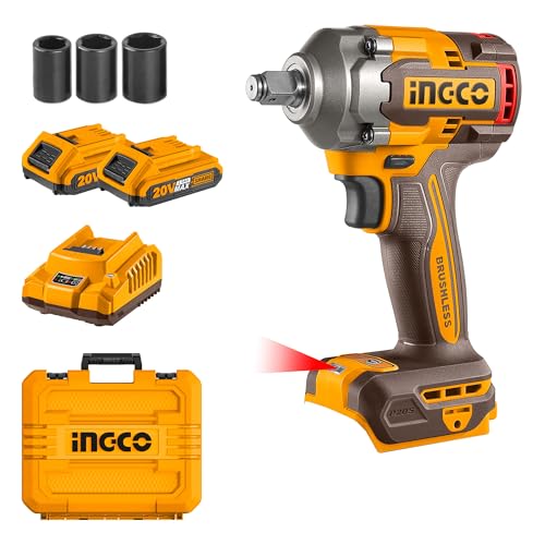 INGCO 20Vコードレスインパクトレンチは、最大400Nmのトルクを持ち、2つの2.0Ahバッテリーと急速充電器、3つのソケットが付属。1/2インチの電動インパクトガンCIWLI2040です。