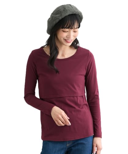 ニッセンのマタニティTシャツは、産前・産後に最適な授乳服です。授乳しやすいデザインで、丸首長袖の無地Tシャツ。ボルドーカラーのマタニティSサイズが特徴で、快適に着られます。