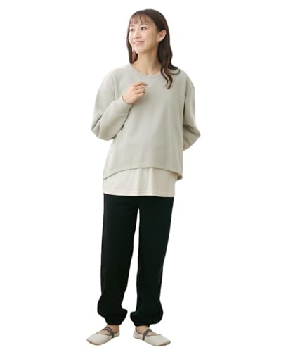 ニッセンのマタニティルームウェアは、あったかい裏起毛素材で、産前・産後の授乳に適したデザイン。サンドベージュの上下セットが秋冬に最適で、リラックスした着心地を提供します。サイズはマタニティM。