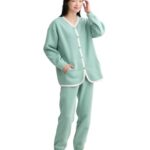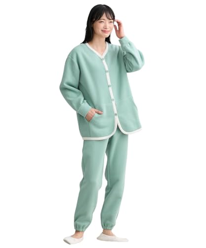 ニッセンのマタニティルームウェアは、冬用の長袖パジャマで裏起毛仕様。授乳服としても適しており、ダークブルーのライン配色が特徴です。サイズはマタニティLLで、産前・産後両方に対応しています。