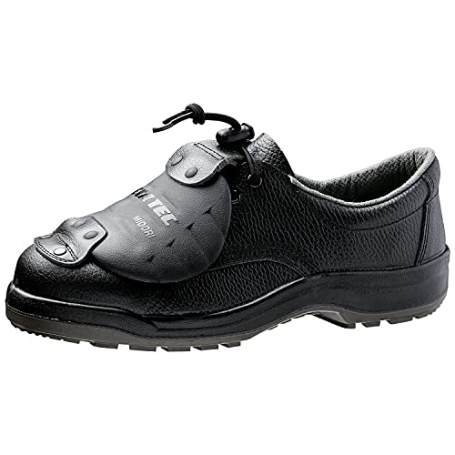 ミドリ安全のJIS規格対応安全靴CJ010は、短靴タイプで普通作業向け。ワイド先芯と甲プロテクタを装備し、耐滑性もあり、黒いゴム紐が特徴。サイズは26.0 cmです。