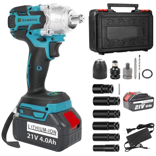 Sogglooの電動インパクトレンチは21V、バッテリー4.0Ah付きで最大トルク500N·m。ブラシレスモーター採用、無段変速、自動停止モード、正逆転両用。LEDライト付きで、タイヤ交換やホームメンテナンスに便利。