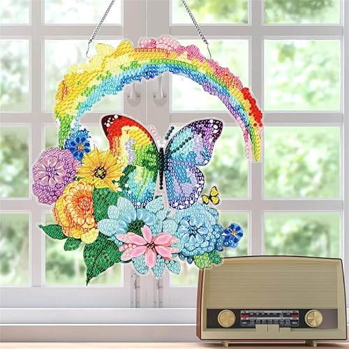 DIY 5D ダイヤモンドアートキット。バタフライデザインのハンギングオーナメントで、壁や窓、ガーデンの装飾に最適。美しい輝きを楽しめます。