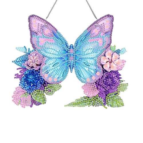 5Dダイヤモンドアートのハンギングオーナメントキット。蝶をモチーフにしたDIYウィンドウやガーデン、壁装飾に最適。