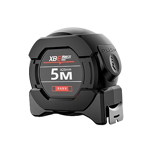 ステンレス製の5m x 25mmの蛍光巻尺。高精度で耐久性に優れ、セルフロック機能付き。目盛りが見やすく、防水設計。DIYや建築に最適な測定ツールです。