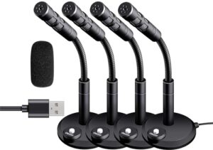 コンデンサーPCラップトップマイクはプラグアンドプレイで使いやすく、360度調整可能なグースネックデザインとノイズキャンセリング技術を備えています。