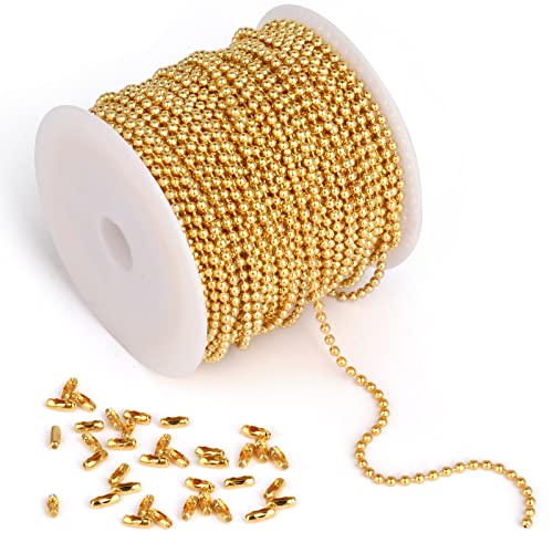 ゴールドボールビーズチェーン[2.0mm/50フィート]は、18Kゴールドメッキステンレススチール製で、ジュエリー製作に最適。コネクター30個付き。